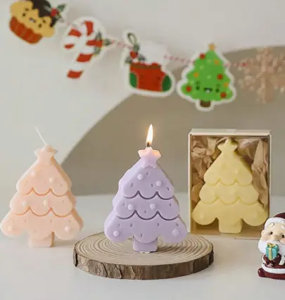 Add a warm and festive touch to your home this holiday season with these delightful tree-shaped scented candles. Designed in soft pastel hues, these candles are crafted to bring a cozy ambiance to any space. Each candle is meticulously detailed to resemble a Christmas tree and comes in a gift-ready box, making it a thoughtful present for loved ones.